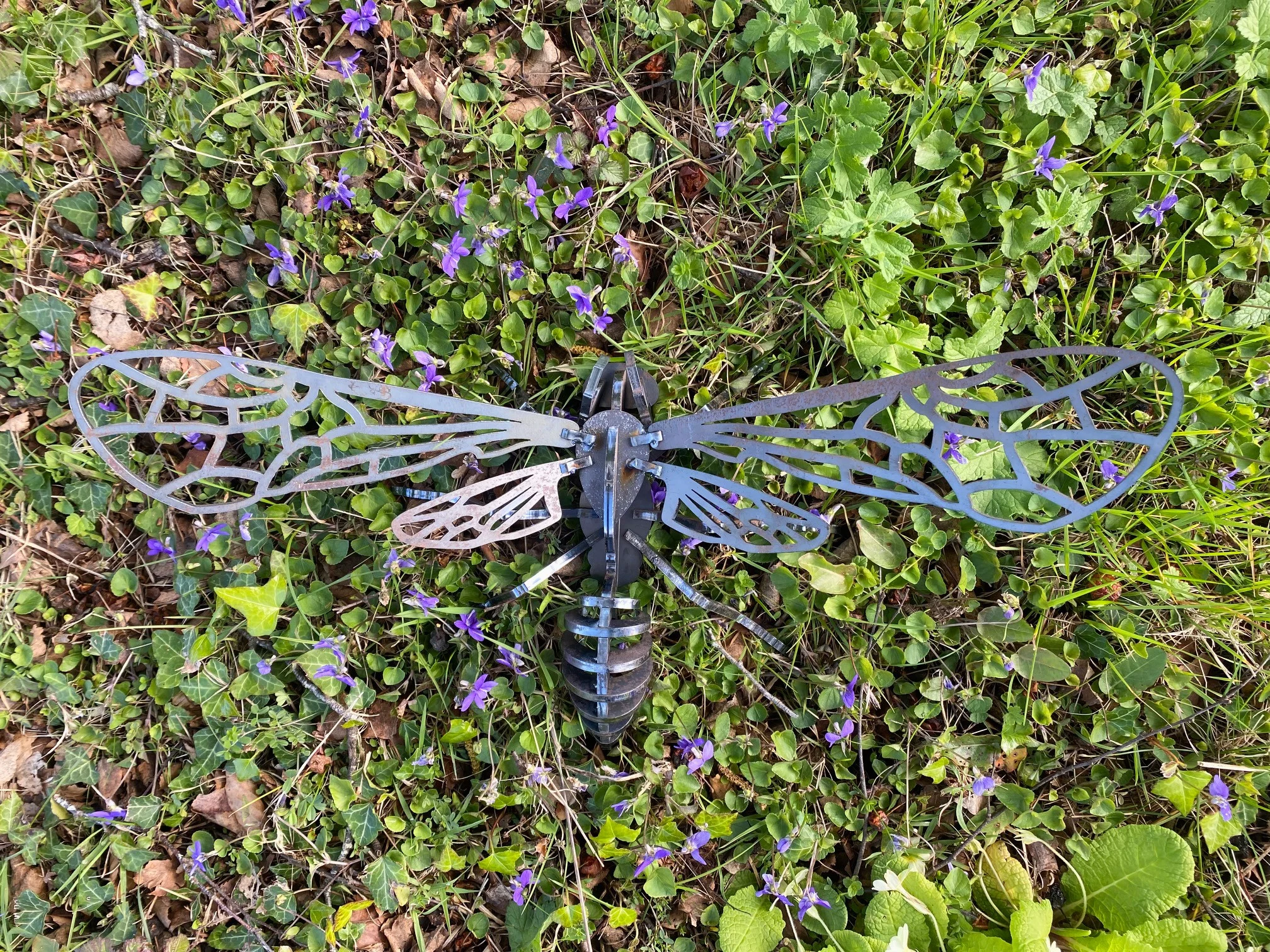 Libellule en acier brut - PETITE Dim. : H19/L52 cm Prix : 72 € - GRANDE Dim : H34/L92 cm - Prix : 222 €