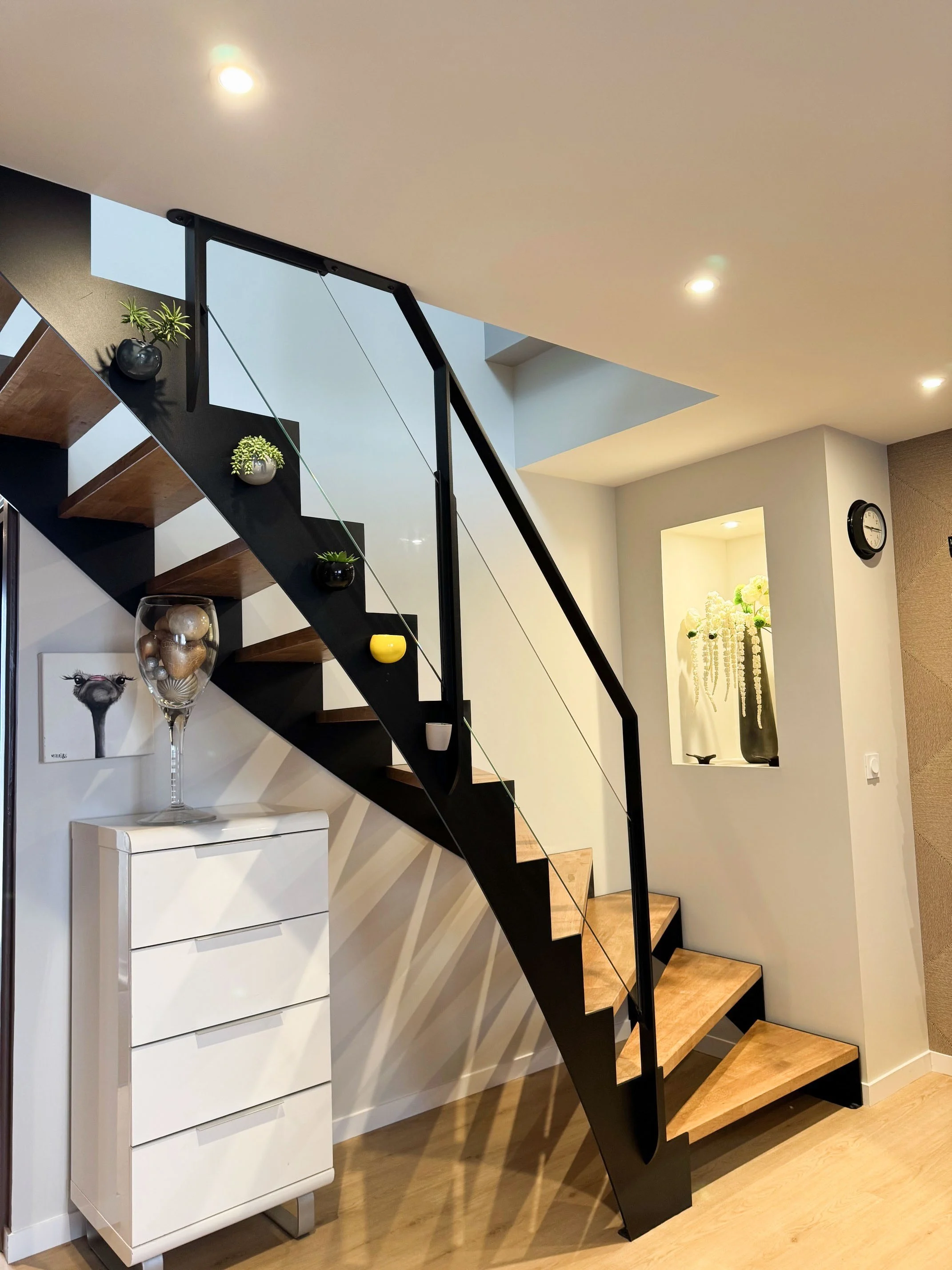 La gamme d’escaliers intérieurs proposée par ART MÉTAL CONCEPT est variée. Nous partageons ici nos dernières réalisations et nous tâchons d’alimenter ces pages régulièrement car nos créations évoluent continuellement en fonction de vos projets ! En effet, chaque création est unique et pensée pour un client, une famille, une façon de vivre, d’occuper l’espace, un plan de maison en particulier, une rénovation, une construction neuve, un usage privé ou professionnel, un budget … bref, en fonction de VOS besoins.